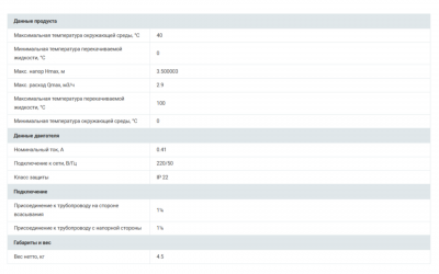 - Макс. температура перекачиваемых жидкостей +100 °C