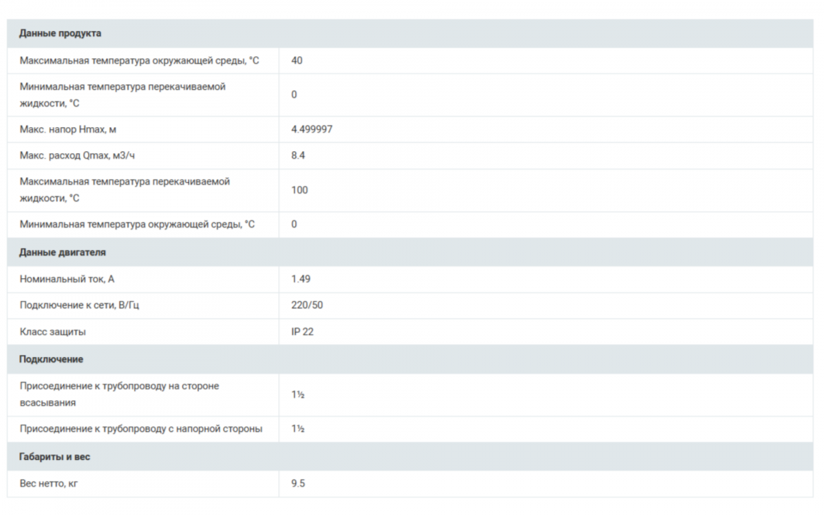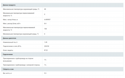 - Макс. температура перекачиваемых жидкостей +100 °C