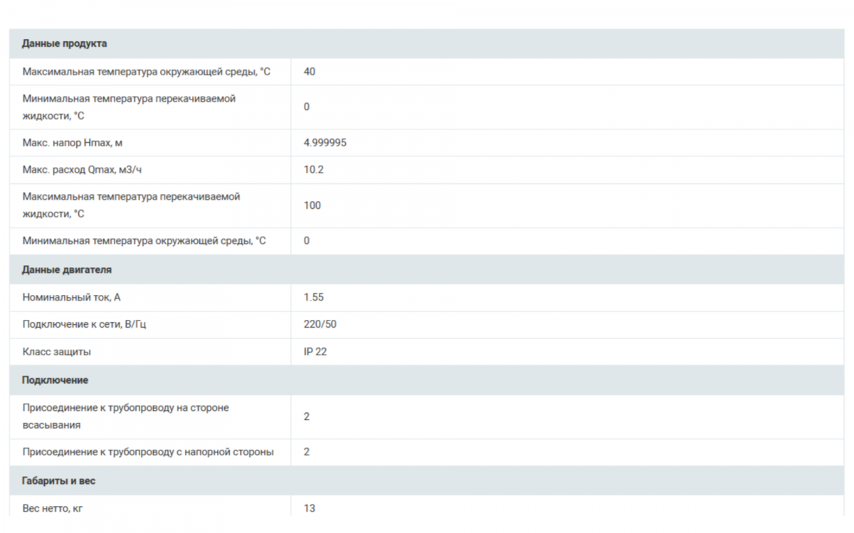 - Подсоединения на стороне всасывания и напорной стороне: в зависимости от типа